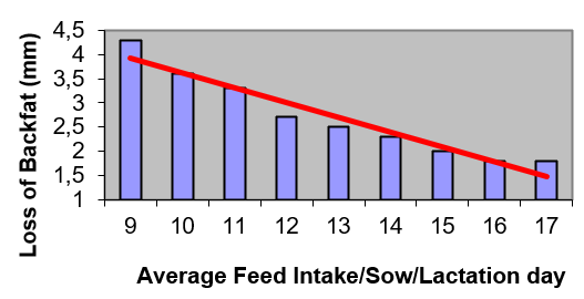 Este es el resultado directo del consumo de alimento de las cerdas durante la lactancia. La ingesta de alimento de la cerda debe ser suficiente para satisfacer las demandas de lactancia de sus lechones en crecimiento, así como sus propios requisitos de mantenimiento.