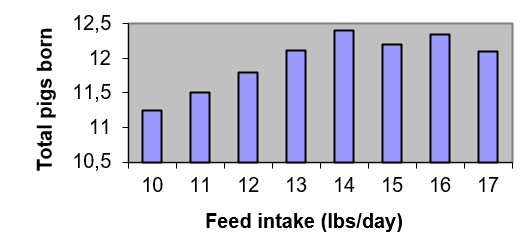 Además, la ingesta diaria de alimento también tiene un impacto en el total de cerdos nacidos en la camada posterior.